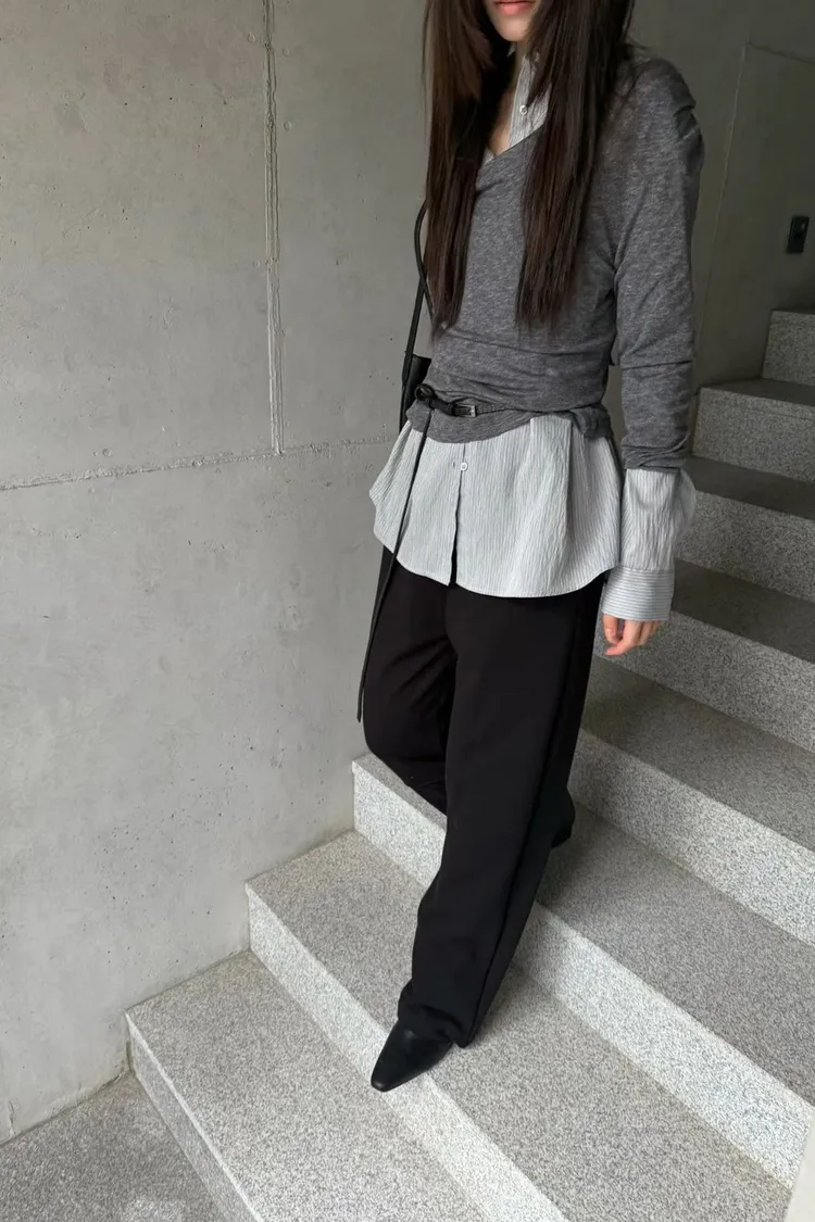 N206 立體車線寬鬆休閒褲(黑/咖/深灰/淺灰)