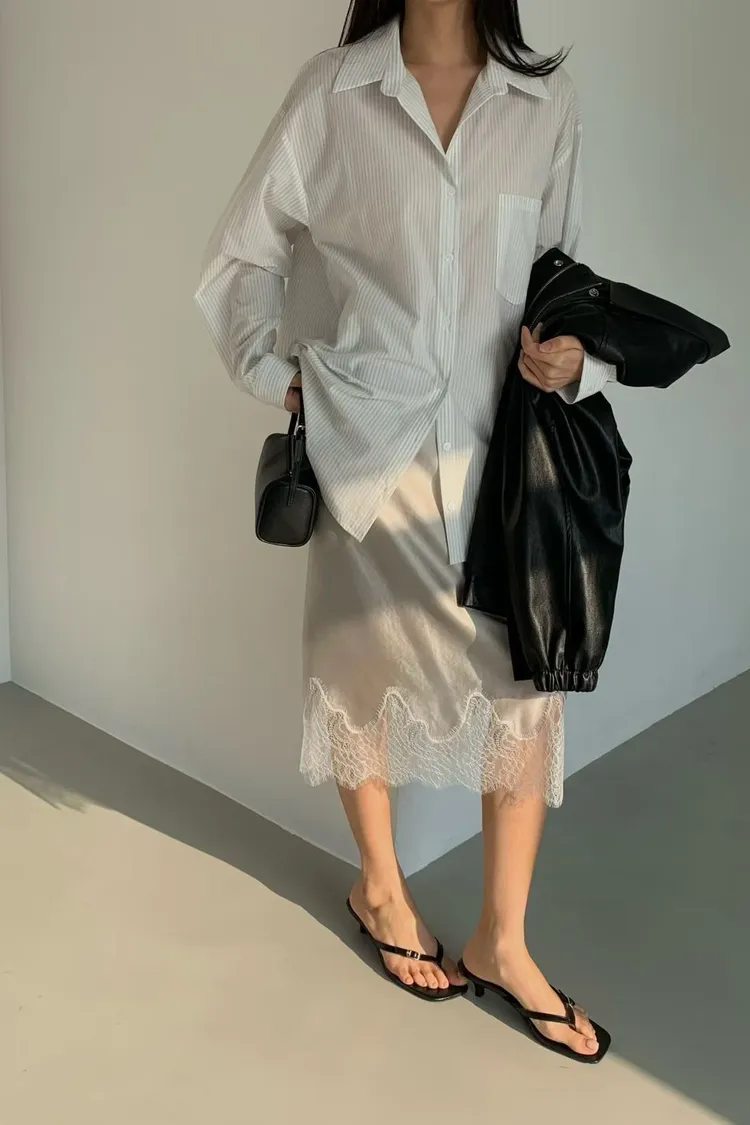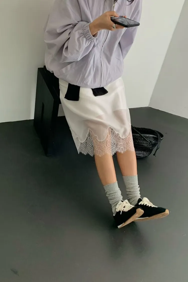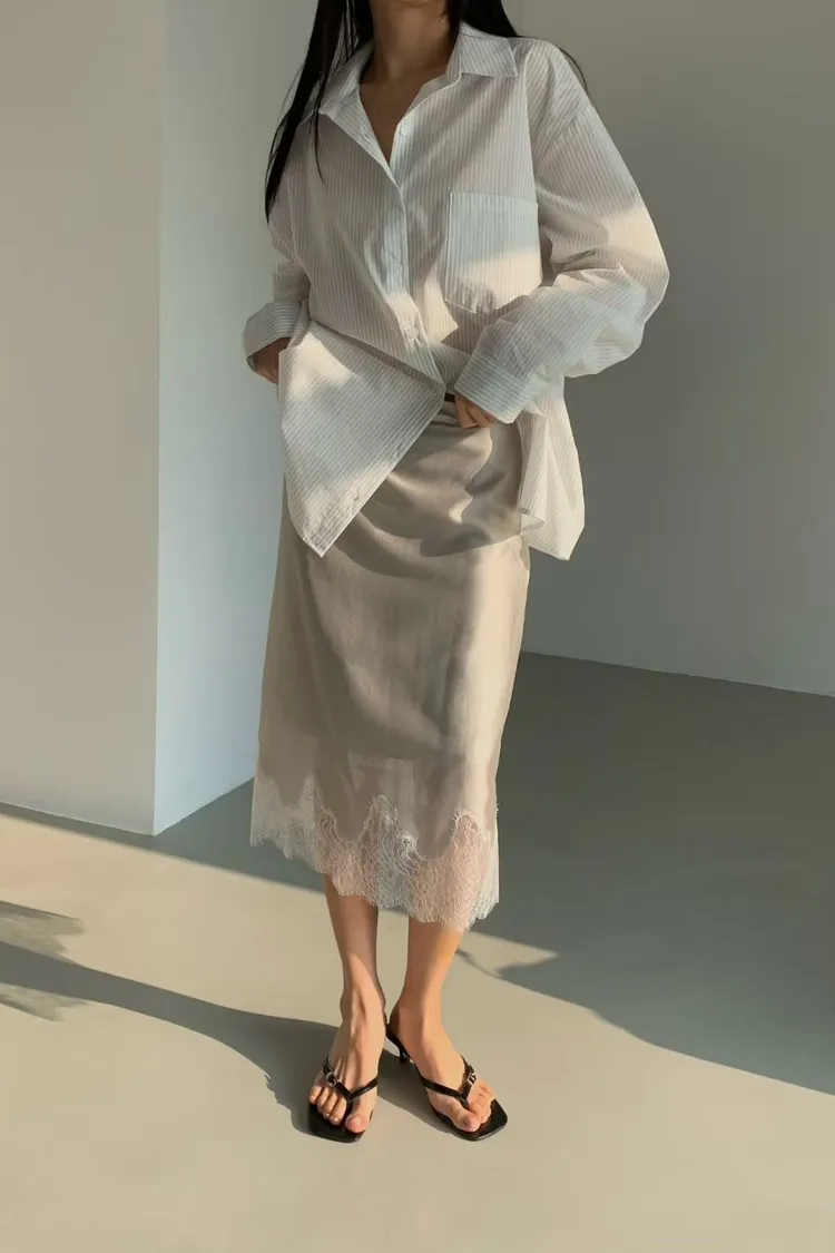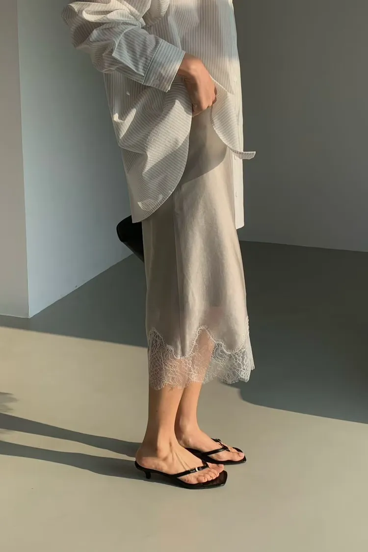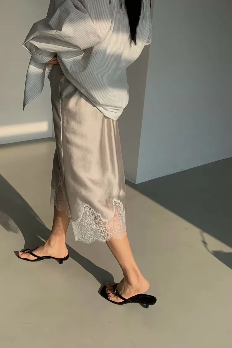 T24 緞面蕾絲半裙(4色)